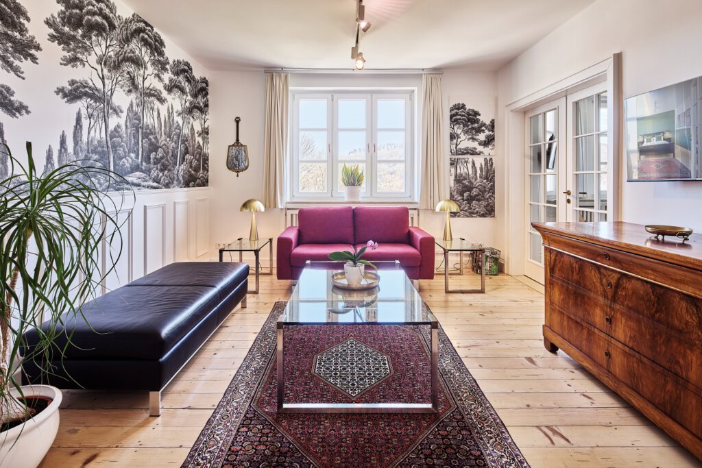 - Im Sommer: Bistro-Tisch mit Stühlen und eine gemütliche Lounge-Ecke im Garten