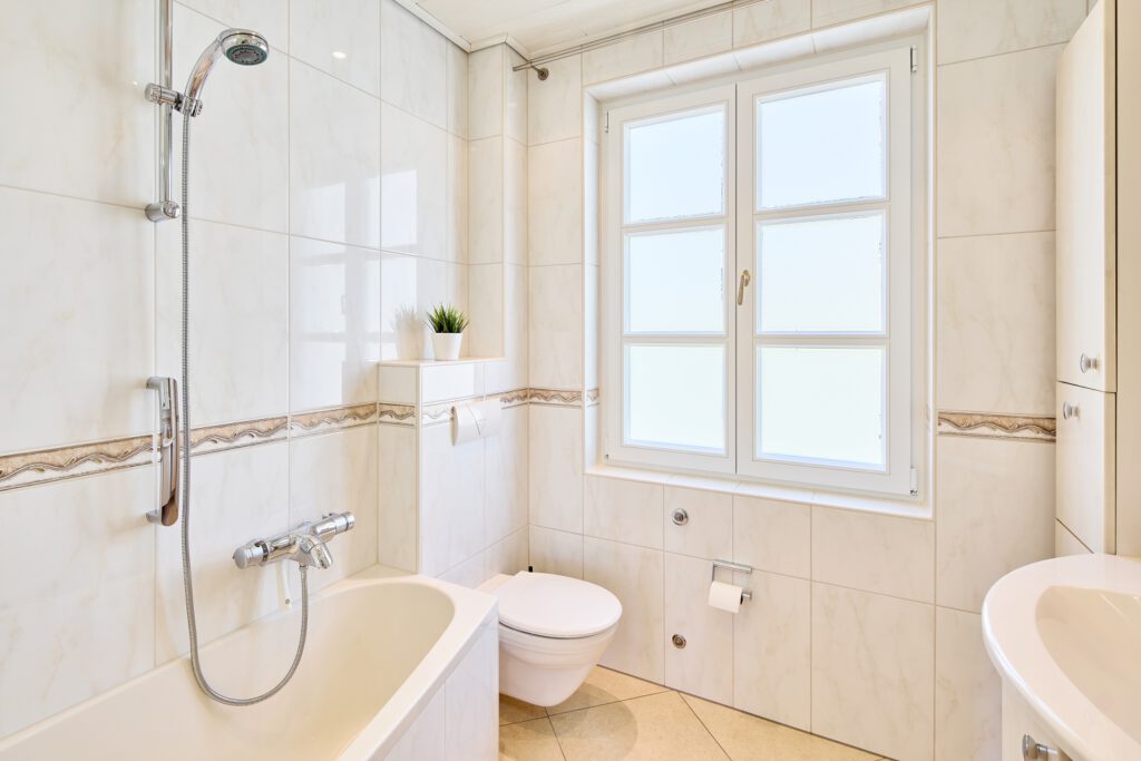 - Bad: mit Fenster und Duschbadewanne, Fön