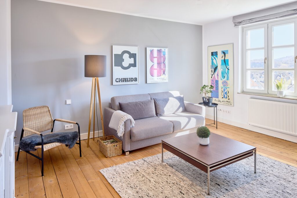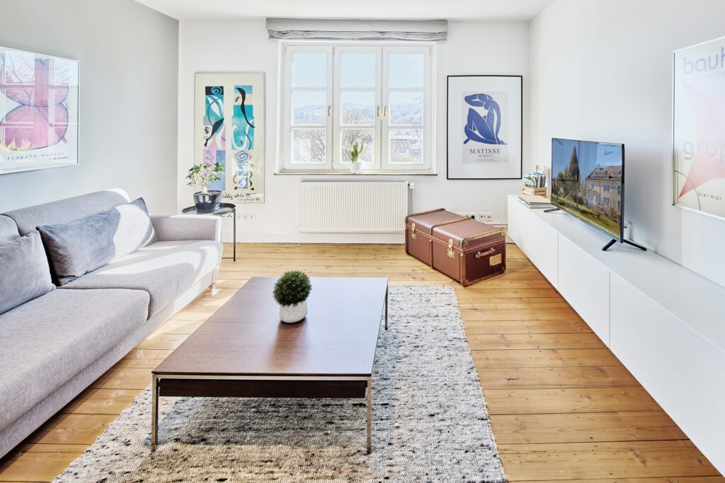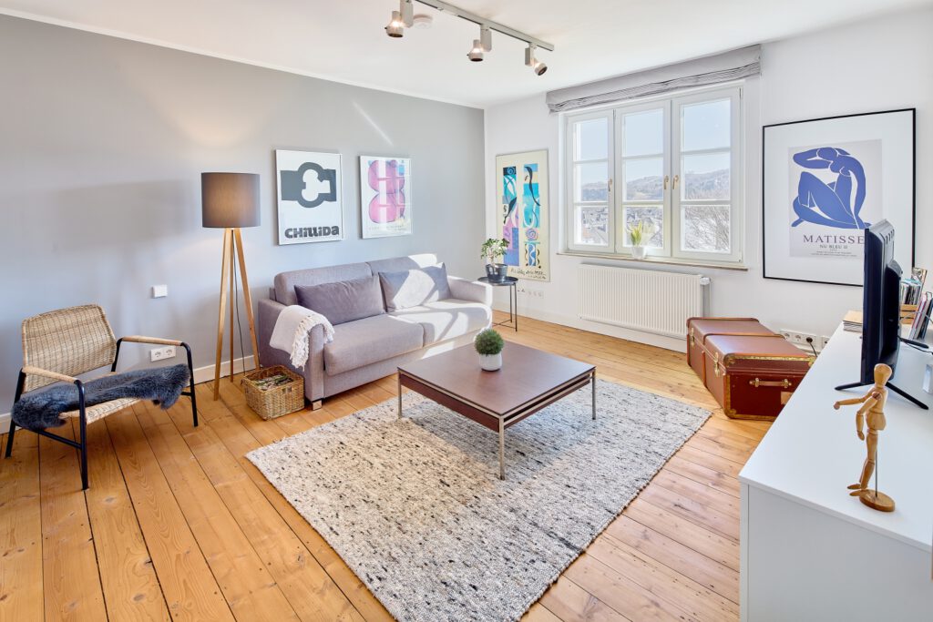 - Wohnzimmer: Sofa als Schlafcouch (1,40m x 2,00m) nutzbar, Fernseher,